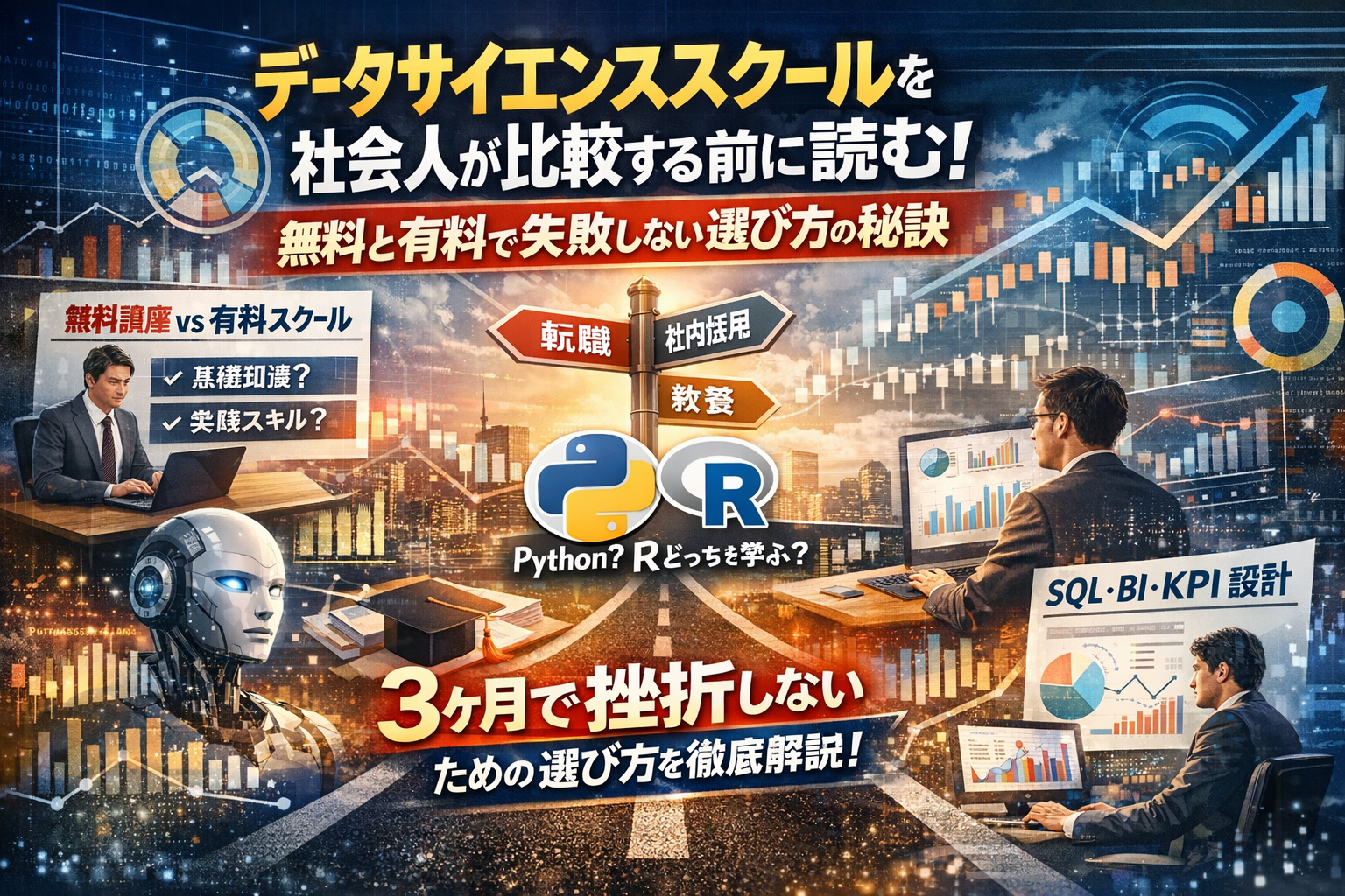 このページでは、単なるランキングやおすすめ講座紹介ではなく、無料講座と有料スクールの役割分担、転職か社内活用か教養かという目的別の講座マップ、PythonとRの選び方、独学とスクールのどちらが自分に合うかという判断軸まで、社会人の生活リズムと実務を前提に整理します。