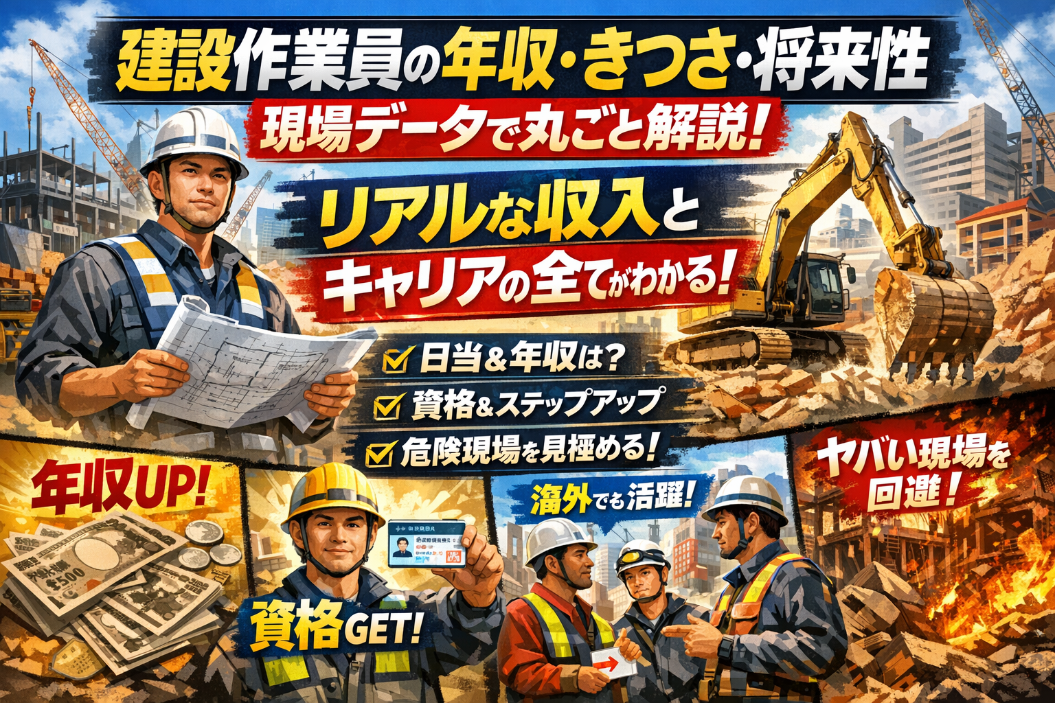 建設作業員という言葉に「きつい」「底辺」「将来性がない」といったイメージだけを重ねたまま動くと、年収もキャリアも本来取れたはずの選択肢を静かに失っていきます。今の求人票やネット情報の多くは、建設作業員と土木作業員や建築作業員、普通作業員と職人の違い、労務単価と自分の給料の差、危ない現場とまともな現場の線引きといった「決定的なポイント」をほとんど説明していません。結果として、きつさだけ高くて伸びない現場に入り込んだり、単価アップや資格取得のチャンスを逃したり、英語や多能工スキルで広がるはずのキャリアを自分で潰している人が少なくありません。