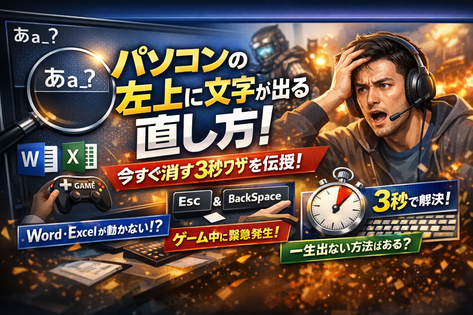 パソコンの左上に突然文字が出て、WordもExcelもゲームも操作できないまま手を止めていませんか。この現象は故障でもウイルスでもなく、多くの場合日本語入力とフォーカスの仕様です。つまり仕組みを一度理解しておけば、3秒で止める直し方と、再発を大きく減らすコツを自分で再現できます。
