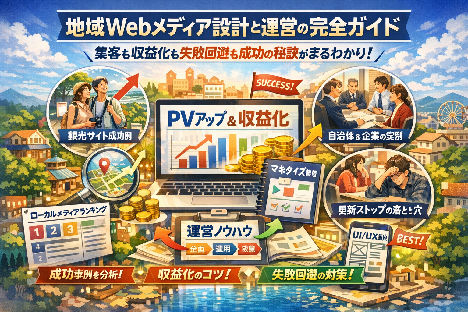 本記事では、ローカルメディア一覧や地域メディアの具体例、観光サイト見やすい・おしゃれの裏側にあるUI/UX設計を押さえつつ、更新が止まるパターンとそれを避ける運営フローまで一気通貫で整理します。読み進めれば、自分の地域webメディアがどの失敗シナリオに近いのか、どこまでPVと収益を期待すべきか、そして今すぐ見直すべき設計ポイントが具体的に見えるはずです。