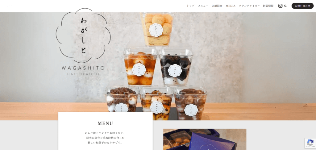 和菓子にアソビゴコロを加えて、現代風にアレンジした和菓子専門店となっております。 お子様から大人まで、幅広い年齢のお客様に楽しんでもらえる、和菓子のかたちを提供するお店です。 京都・北川半兵衛商店の抹茶・ほうじ茶を使用した本格わらびドリンクや、 看板商品のわらび餅もバラエティ豊かに取り揃えておりますので、宮島街道にお越しの際は、是非、当店にお立ち寄りください