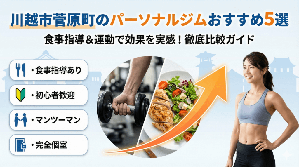 川越駅東口から徒歩圏の菅原町で「続けられるパーソナルジムはどこ?」と迷っていませんか。仕事帰りに通える営業時間、無理のない料金、女性でも安心できる環境——この3点が揃うと継続率はぐっと上がります。さらに週1回でも、目標と食事の整え方次第で体脂肪や姿勢は着実に変わります。