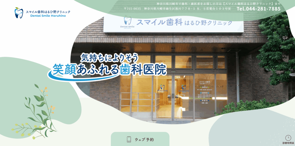 | 特徴 | 川崎市で歯医者をお探しなら、はるひ野駅北口・若葉台駅から徒歩6分の「スマイル歯科はるひ野クリニック」にお越しください。 神奈川県川崎市にある「スマイル歯科はるひ野クリニック」は、地域で頼れる歯医者であることを目指し、日々の診療にあたっています。 医院名の“スマイル”には、患者さまの笑顔はもちろん、スタッフ自身の笑顔や姿勢も含まれており、診療を通じてお互いに気持ちよく過ごせる空間をつくり出すことを理念としています。 一般歯科はもちろん、専門性の高い診療にも力を入れています。ホワイトニング(27,500円~)や、矯正歯科、小児歯科など、総合的な医療をご提供し、皆様の健康をサポート。 当院の診療では、患者さまご本人やそのご家族が本当に受けたいと思える治療を基準にご提案します。症状の有無にかかわらず、今後の健康を見据えた予防的な取り組みにも力を入れており、一時的な処置ではなく、長く健康な状態を保つためのサポートを心がけています。とくに初診時や不安を抱えるお子さまに対しては、丁寧な説明とやさしい声がけを意識し、無理なく受診できるよう配慮しています。 小児歯科をお探しの方には特に知っていただきたいのが、当院独自の「こどもスマイル仮歯」です。これは、乳歯から永久歯に生え変わる過程で前歯が抜けた際に、一時的に歯の見た目を補うための専用仮歯です。 クリニック内は完全バリアフリー設計で、段差のないスムーズな動線を確保。入口の幅も広く、手すりを設けるなど、車いすをご利用の方やベビーカーをお持ちの保護者の方も安心です。さらに、プライバシーに配慮した個室診療室も完備しており、ベビーカーや車いすのまま入室していただけます。 川崎市で歯医者をお探しの方は、ぜひ「スマイル歯科はるひ野クリニック」へ。詳細情報はこちら |