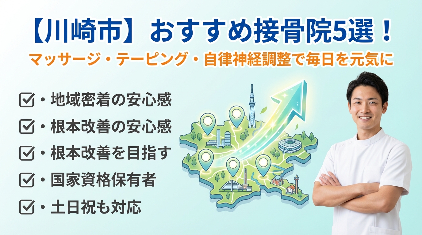 川崎駅や溝の口で「整骨院 おすすめ」「接骨院 保険適用 500円 川崎」と検索し、口コミサイトやEPARKのランキング上位から順に見ているなら、すでに静かに損をしています。今ネットで目につく情報の多くは、駅近かどうかと料金がいくらかまでは教えてくれますが、「その院があなたの毎日の仕事や家事を無理なく支え続けてくれるか」という本質までは届きません。肩こりや腰痛、産後の骨盤ケア、自律神経の不調は、マッサージ1回で劇的に変わるよりも、通院ペースと生活導線の設計ミスで悪化と改善をくり返しているケースが圧倒的に多いからです。