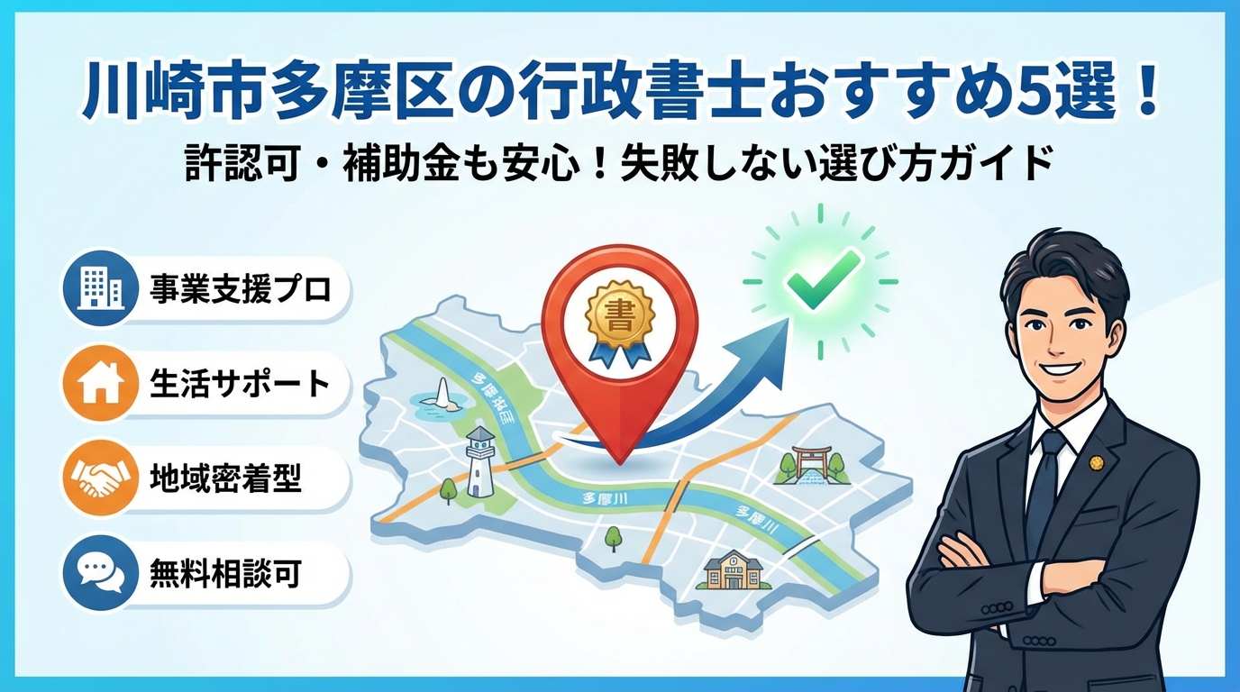 本記事では、川崎の経営者が陥りやすい手続きの順番ミスや、ネットの雛形や格安サービスで済ませて損をする理由を、相続・遺言・成年後見・在留資格まで含めて整理します。そのうえで、多摩区の行政書士事務所を「事業に強い」「生活に強い」「両方支援できる」の観点でマッピングし、相談無料やオンライン対応、支援実績、採択率、相談料や報酬の目安まで具体的に比較できるようにしました。行政書士と司法書士、税理士の役割分担と連携のリアルも示しますので、「自分はどのタイプの事務所に何を任せるべきか」がこの記事だけで判断できます。読み進める数分が、今後の現金の手残りと家族の安心を大きく変えます。