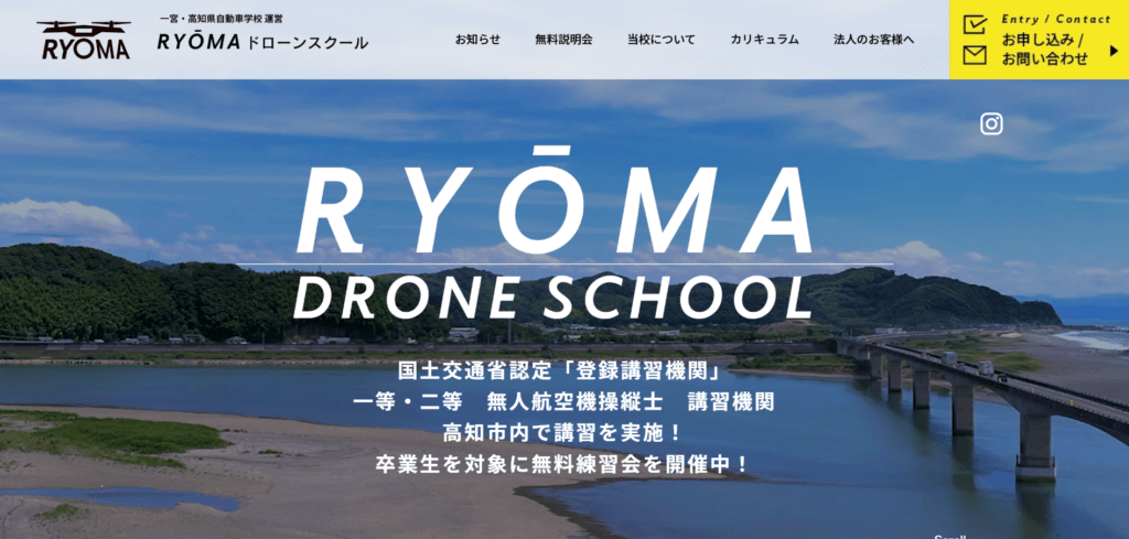 | 特徴 | RYŌMAドローンスクールは、国土交通省認定の登録講習機関として、一等・二等 無人航空機操縦士の国家資格取得に対応した講習を高知市内で実施しています。自動車教習所で培った指導ノウハウを活かし、安全意識を重視した質の高いカリキュラムをご提供します。卒業生を対象に無料練習会も開催し、実務に直結するスキル定着をサポートいたします。人材開発支援助成金を活用すれば受講費用の負担を約半減でき、ビジネス活用を見据えた導入にも最適です。高知ドローン協会加盟校として、法令順守と地域の防災・減災への貢献を大切にし、点検・測量・映像制作・物流など幅広い領域で活きる技術を身につけられます。無料説明会や受講日程はカレンダーからご確認いただけます。 |