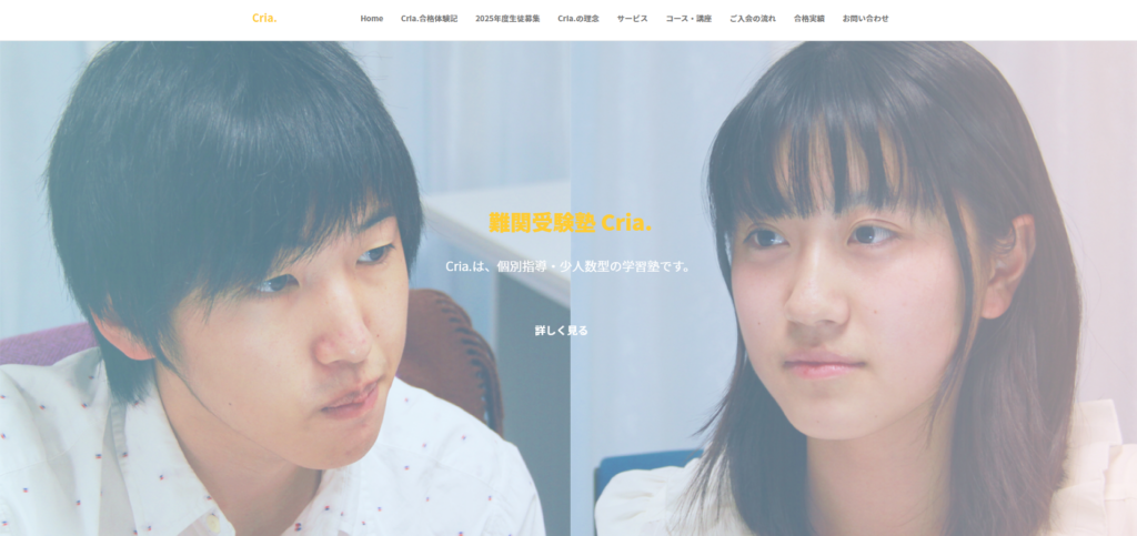 | 特徴 | 難関受験塾Cria.は、オンライン指導と授業動画配信を軸にした学習支援を行う、個別指導・少人数制ゼミの学習塾です。一人ひとりに最適化した学習計画とペースメイキングで、無理なく着実に実力を伸ばします。 小学生から高卒生まで、中学受験(私立・都立)・高校受験・大学受験(医学部含む)に対応し、AO入試・小論文・面接指導まで幅広くサポート。不登校など、通塾に不安のある生徒にも柔軟に対応し、学び直しや進路設計も丁寧に支援します。 オンライン仮想教室と約25,000本の授業動画、オリジナルデジタルテキストを活用し、通学なしでも質の高い学習環境を実現。実績豊富なプロ講師・ネイティブ英語講師が指導し、質問は24時間受付可能です。 明大前教室またはオンラインでの無料面談・学習カウンセリングも実施中。合格への作戦会議からアフターフォローまで、受験勉強をトータルにマネジメントいたします。まずはお気軽にお問い合わせください。 |