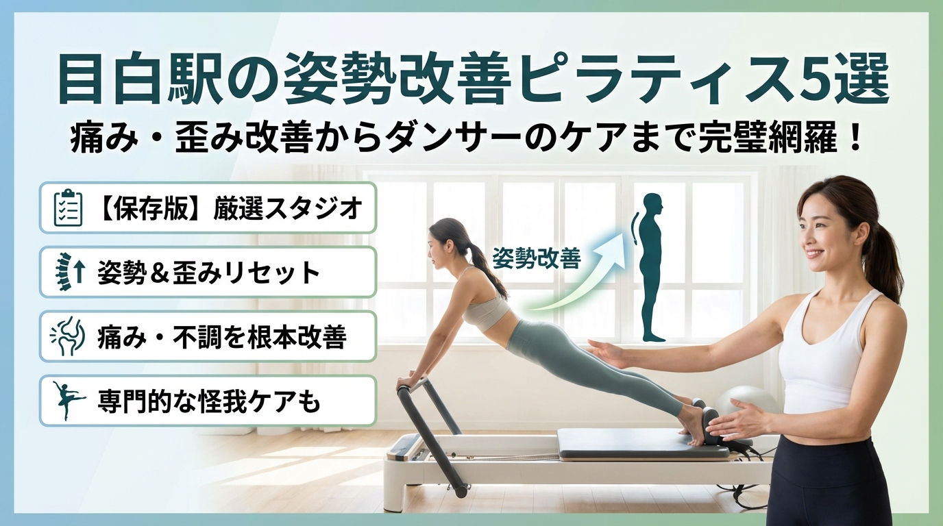 本記事では、目白駅からの徒歩分数や雨天時の動線、体験料・入会金・回数券と月額の損益分岐、キャンセル規定までを一括整理。さらに、リフォーマーやタワーを用いた肩甲骨・胸椎のアプローチで猫背や巻き肩を整える要点や、骨盤の中立位と呼吸で腰の張りを軽減するコア強化の手順を、初回体験の流れとセットで具体化します。