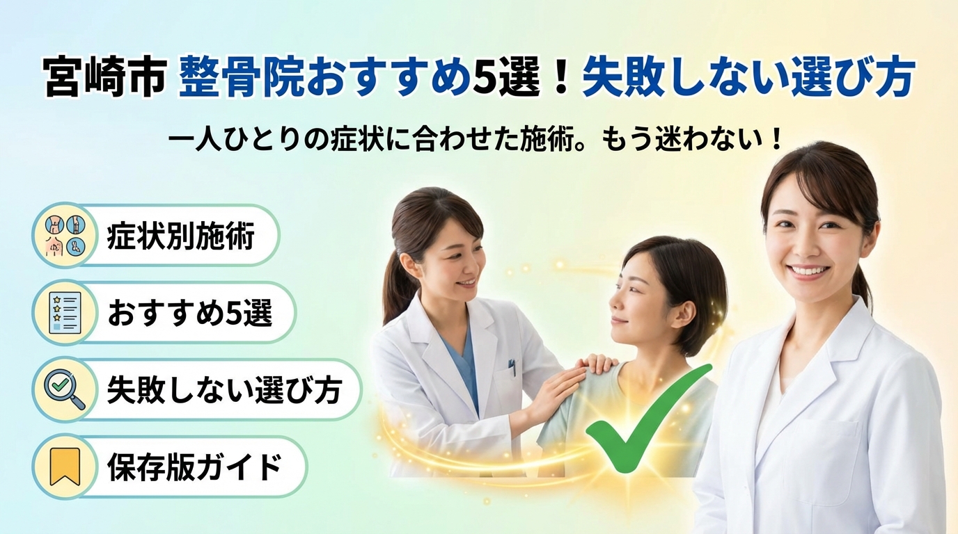 さらに、安さやクーポン、人気だけで選んだときのトラブル例や、「ボキボキ整体が怖い」「子連れで通いたい」「メンズ歓迎の整体を探したい」といった条件別のチェックポイントも明示します。このガイドを一読してから探せば、宮崎市で自分の身体と生活に本当に合う整骨院を、最短距離で絞り込めます。
