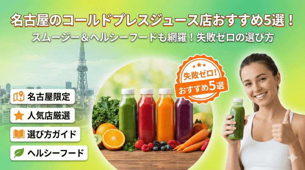 その場で飲む一杯から、ジュースクレンズの1日設計、価格帯の目安や無添加チェックのポイントまで、このページだけで迷いを解消。今日の名古屋巡りが、あなたにとって最短で納得の一杯に出会える時間になります。