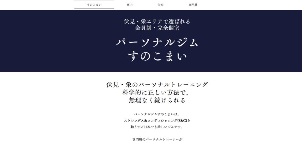 特徴トレーナーは NSCA認定ストレングス&コンディショニングスペシャリスト(S&Cコーチ) で、全国的にも珍しい資格保持者。管理栄養士や柔道整復師など専門職とも連携し、健康・体力・姿勢改善を総合的にサポートします。 一般的な「ボディメイク中心のパーソナルジム」とは異なり、すのこまいでは食事・運動・睡眠をバランスよく整え、過度な食事制限や追い込みのないトレーニングを重視。初心者や未経験の方も安心して通える会員制の空間です。 子どもから高齢者、アスリートまで幅広く対応し、ダイエット・運動不足解消・姿勢改善・パフォーマンス向上など、目的に合わせたプログラムを実施しています。 名古屋市伏見・丸の内エリアを中心に、岐阜・三重・愛知県外からも多くの方が来店。 完全予約制・マンツーマンのため、落ち着いた空間で安心して続けられます。 体験セッションやカウンセリングのご予約も受付中です。