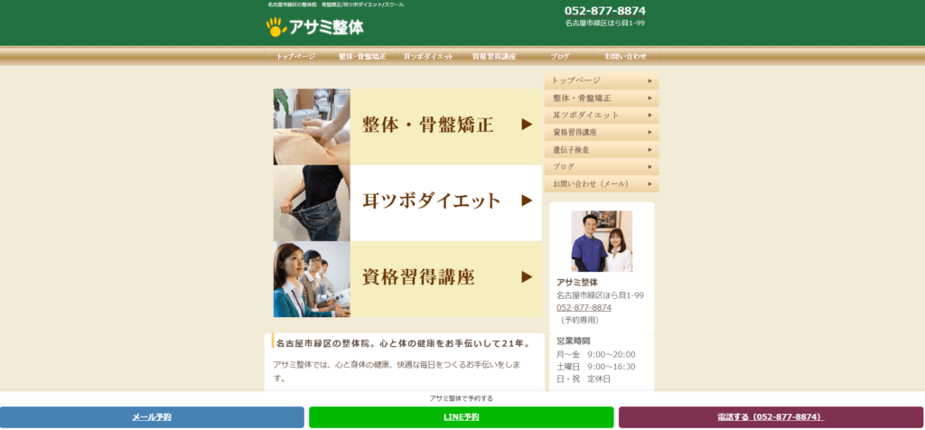 | 特徴 | 名古屋市緑区ほら貝にあるアサミ整体は、開院21年の実績で心と身体の健康づくりをお手伝いしています。骨盤矯正や身体の歪みケア、健康的に10kg以上の減量を目指す耳ツボダイエット、資格取得を目指すセラピスト養成講座まで、目的に合わせてご相談いただけます。自律神経ケアや遺伝子検査の活用、ラジオ出演・ブログ発信など情報も豊富です。アクセスは地下鉄相生山から徒歩5分、市バスほら貝から徒歩1分、駐車場4台完備。お気軽にお問い合わせください。 |