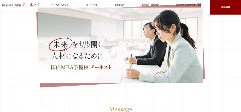 特徴国内MBA予備校アーネストは、京都大学・一橋大学・早稲田大学・慶應義塾大学・神戸大学など難関ビジネススクール合格を目指す方を、オンラインで徹底支援する専門予備校です。研究計画書・小論文・面接・英語・出願書類に至るまで、実務家講師が個別最適化したプランで伴走いたします。京大MBAホルダーが運営し、合格に直結する戦略と実践力を磨けます。科目別講座からフルパックまで柔軟に選べ、添削は納得いくまで対応します。忙しい社会人でも全国どこからでも受講でき、入学後に役立つ経営学の基礎・応用も提供します。まずは無料相談で現状を可視化し、最短ルートをご提案いたします。志望校合格を、私たちと共に実現しましょう。