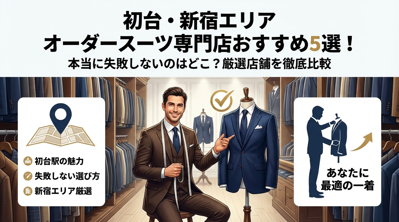 本記事は「新宿 スーツ おすすめ」や「オーダースーツ 安い 東京」のような一般的なランキングではなく、初台駅からの生活動線を起点に、オーダースーツの相場、パターンオーダーとフルオーダーの違い、量販店との比較、礼服や就活・転職・結婚式などシーン別の正解スタイルまでを一気通貫で整理します。