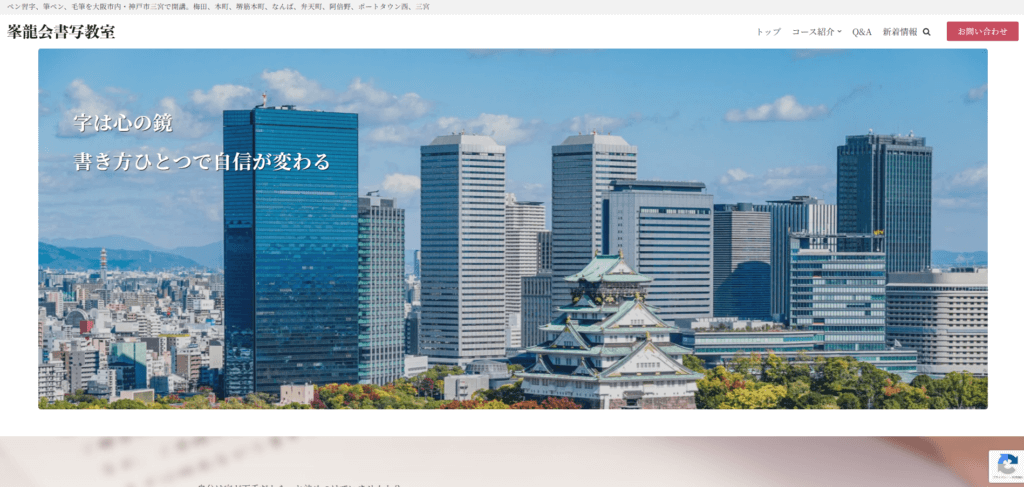 | 特徴 | 神戸三宮センタープラザ西館6階、大阪駅前第二ビル5階、堺筋本町産業創造館5階、難波オーキャットビル4階、阿倍野学習センター3階、南港ポートタウン西ビル2階のいずれも駅近の場所で、ペン習字、筆ペン、毛筆教室を開設しています。 初心者から上級者まで親切、丁寧をモットーにひとりずつ個人別に優しくわかりやすく指導しています。宿題などはなるべく少なく合理的な指導法なので負担少なく上達が見込め長く続いておられる生徒さんが多いです。 費用もリーズナブルで業界最安値。 1科目月3回で4650円 2科目月3回でも5700円 体験学習月3回4200円 詳しくはお電話かメールで直接お問い合わせください。 お気軽にご参加ください。 |