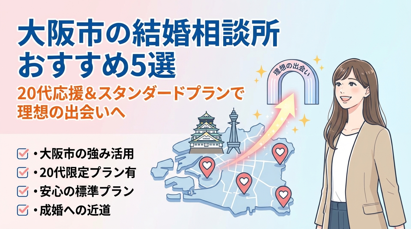 この記事は、「大阪市 強みを引き出す結婚相談所」を探す人に向けて、梅田や心斎橋、難波などエリアごとの特徴から、仲人型とデータマッチング型の違い、無料カウンセリングで確認すべき逆質問までを一気通貫で整理します。婚活アプリで自己肯定感を削られた30代男性や30代後半女性、再婚希望の方が、口コミや成婚率に振り回されず、「どの相談所なら自分の価値を正しく評価し、プロフィールとお見合いの場でその強みを翻訳してくれるか」を具体的に判断できる状態まで導きます。料金の安さよりサポート体制の実務レベルで選びたいなら、ここから先を読む時間はそのまま結婚への近道になります。