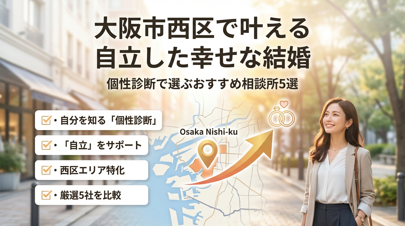 この記事では、大阪市西区の主要相談所を地図感覚で整理し、自立型婚活と依存型婚活のちがい、リアルな失敗ケース、伴走サポートの濃さを見抜く質問集までを実務目線で一本のロードマップとしてまとめました。読み終えるころには、「自分に合う結婚相談所はどこか」だけでなく、「どう動けば無駄なく成婚に近づけるか」まで、具体的にイメージできるはずです。