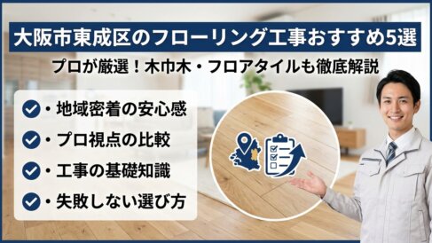 大阪市東成区のフローリング工事おすすめ5選!木巾木工事やフロアタイル工事までプロ目線で徹底解説 床が沈む、きしむ、冬は冷える——大阪市東成区でフローリング工事を検討中の方から、よくこんなお悩みを伺います。特にマンションでは直床・二重床や防音等級L-40/L-45の指定、管理規約の申請など、見落としで工期や費用が膨らむケースが少なくあり... 2026.01.30