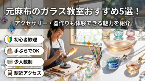東京都港区元麻布のガラス教室がおすすめ!5選でアクセサリーや器も体験できる魅力を紹介 「ガラス作品を一度つくってみたいけれど、道具や難しさが不安…」そんな方に、東京都港区元麻布のガラス教室をご紹介します。麻布十番駅から徒歩約10分、閑静な住宅街にある教室で、道具・材料はすべて完備。初回は約2時間30分で器やアクセサリーなどを... 2026.02.02