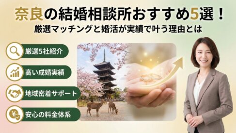 奈良の結婚相談所おすすめ5選!厳選マッチングと婚活が実績で叶う理由とは 奈良で結婚相談所を探し始めたけれど、「大手と地域密着、どっちが自分向き?」「半年でいくらかかる?」と迷っていませんか。全国の主要連盟では独身・年収などの公的証明提出が必須で、安心度は高めです。一方で、奈良は店舗面談とオンラインの併用が進み、... 2026.01.30