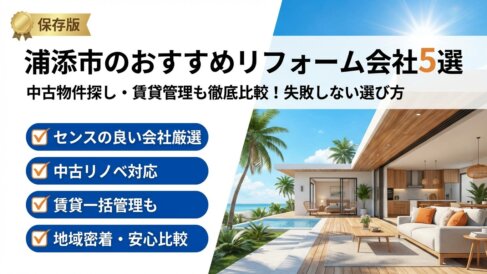 浦添市でセンスの良いリフォーム会社おすすめ5選!中古物件さがしや賃貸一括管理も徹底比較 「センスは好みで決めづらい…」そんな悩みを、数字で見極められるようにしました。浦添市での事例数、口コミ評価、受賞歴、写真の質まで客観的にチェックし、施工前後や細部の納まりで再現性を確認します。特にマンションは管理規約や配管計画、一戸建ては塩... 2026.01.30