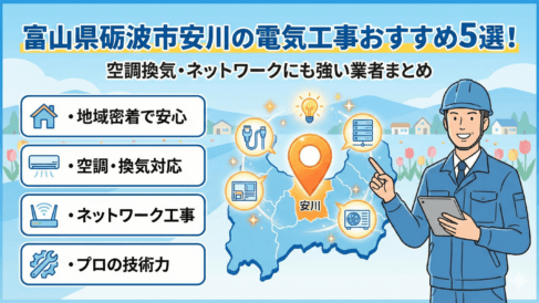 富山県砺波市安川の電気工事おすすめ5選!空調換気やネットワークにも強い業者まとめ 富山県砺波市安川で「ブレーカーがすぐ落ちる」「200Vを増やしたいけど何から?」とお悩みではありませんか。戸建て・店舗ともに、分電盤の空き回路数や主幹容量、配線ルート次第で費用と工期が大きく変わります。国交省積算資料や各電力会社の申請基準に... 2026.01.28