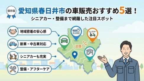 愛知県春日井市で車販売のおすすめ5選!シニアカー販売や整備までまるごと網羅した注目企業 春日井市で中古車を探すと「支払総額が不透明」「在庫がすぐ売れてしまう」「修復歴が心配」といった悩みがつきものです。実際、中古車は同じ年式でも走行5万kmと8万kmで総額が数十万円変わることがあり、納車前整備や保証の範囲で維持費も大きく差が出... 2026.01.30