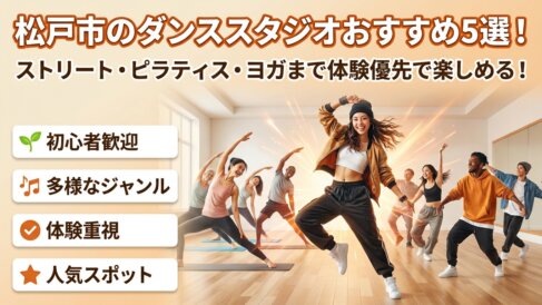 松戸市のダンススタジオおすすめ5選!FreeStyleストリート全般の様々なジャンルのダンスやピラティス・ヨガも楽しめる人気スポット 松戸市でダンススタジオを探すと「広さは?床は滑らない?料金は高くない?」と迷いがちですよね。特に初心者やキッズは安全面、経験者は設備やジャンル対応が気になります。駅近や夜の通いやすさ、予約の取りやすさまで比較しないと、入会後にミスマッチが起... 2026.01.30
