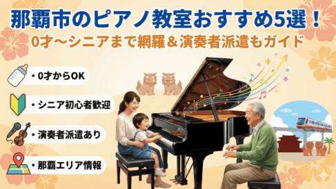 那覇市のピアノ教室おすすめ5選!0才からシニア世代まで網羅&ピアノ演奏者派遣もまるごとガイド 那覇市でピアノ教室を探し始めると、「料金の幅が広い」「口コミの見極めが難しい」「送迎や振替が不安」と悩みがちです。実際、那覇市内には個人教室から全国チェーンまで多様な選択肢があり、月謝はレッスン時間や回数、設備費の有無で総額が大きく変わりま... 2026.01.27