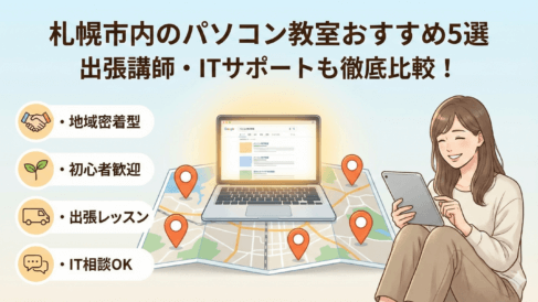 札幌市内のパソコン教室おすすめ5選!出張パソコン講師やITサポートまで徹底網羅で迷わず選べる 札幌市内でパソコン教室を探すと、月謝・1回あたりの料金・入会金・教材費がバラバラで「結局いくらかかるの?」と迷いがちです。例えば1レッスン1,760円の個別指導を掲げる教室もあり、振替制度の有無で通いやすさが大きく変わります。仕事帰りに通え... 2026.01.27