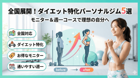 全国展開のダイエット特化のパーソナルジムおすすめ5選!モニターコースや週一コースで理想の自分を見つけよう 「引っ越しや出張が多くて続かない」「短期は痩せてもリバウンドが怖い」――そんな悩みを、全国展開かつダイエット特化のパーソナルジムで解決しませんか。全国に複数店舗を持つジムなら、転勤後も店舗振替で継続しやすく、食事指導や測定の仕組みが整ってい... 2026.01.26