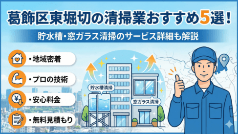 葛飾区東堀切の清掃業おすすめ5選!貯水槽清掃と窓ガラス清掃のサービス詳細を解説 葛飾区東堀切で清掃業者を探すと、「料金が不明瞭」「当日対応の可否が分からない」「資格や保険の確認が面倒」といった悩みがつきものです。とくにエアコンは壁掛け通常機とお掃除機能付きで作業時間が約1.5~3.5時間と大きく変わり、室外機洗浄や防カ... 2025.12.27