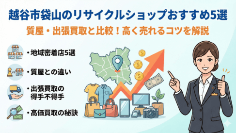 越谷市袋山のリサイクルショップおすすめ5選!質屋や出張買取と比較して高く売れるコツ 越谷市袋山で「どのリサイクルショップに行けばいい?」「大袋駅から迷わず着きたい」「高く売るコツを知りたい」という声をよく聞きます。実際、駅近のチェーン店は在庫が豊富で査定が早い一方、地元店はニッチ品に強いなど特徴が異なります。本記事は大袋駅... 2025.12.27