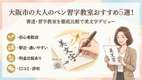 大阪市の大人のペン習字教室おすすめ5選!書道教室や習字教室を徹底比較で美文字デビュー 人前で文字を書くたびに「読みにくいかも…」と不安になる。そんなお悩みを、大阪市で通える大人のペン習字教室で解決しませんか。仕事の書類や宛名、御祝儀の表書きまで、目的別に学べる環境が増えています。通い方も予約制・月謝制・チケット制と多様で、働... 2026.01.21