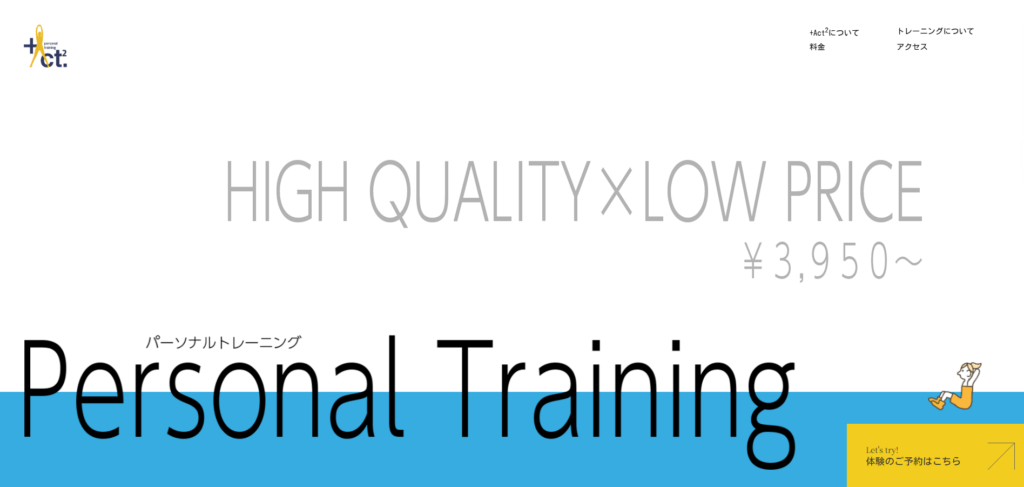 | 特徴 | +Act2は、千代田区神田にあるパーソナルトレーニングジムです。運動の正しいやり方や適切な強度は人それぞれであり、年齢・性別・体調・目的に合わせた最適なプランをご提案いたします。姿勢の乱れや慢性的な不調にも着目し、ストレッチとトレーニングを組み合わせて全身をバランスよく整えます。医療機関と連携した安心のサポート体制、充実した設備、続けやすい価格設定で、はじめての方でも無理なく通っていただけます。御茶ノ水・小川町・神保町など複数路線から徒歩圏でアクセス良好です。まずは「Let’s try! 体験予約」から、お気軽にご相談ください。あなたに合った運動を見つけ、健康的で快適な日常をサポートいたします。 |