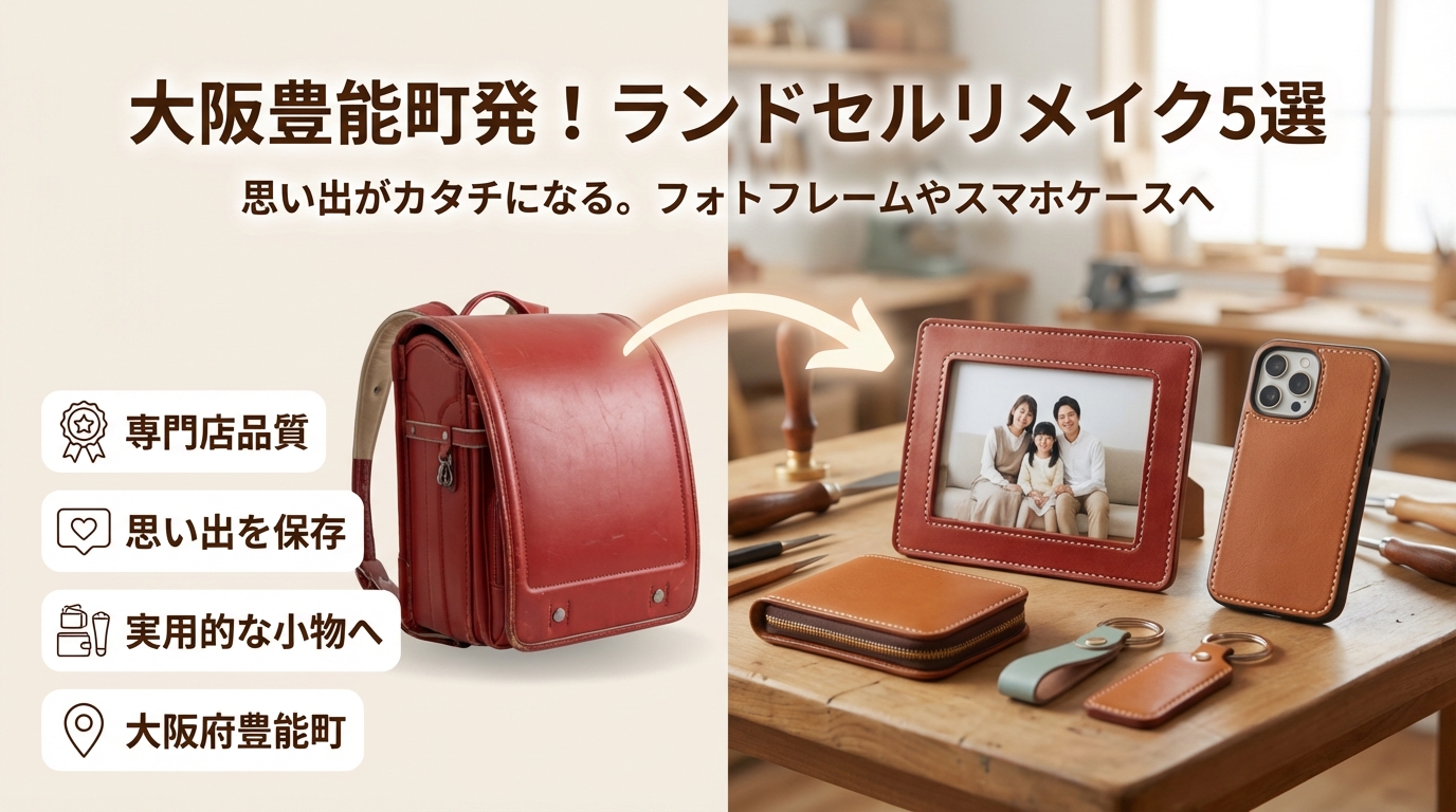 卒業したランドセルを「そのうちリメイクしよう」と保管したままにしていませんか。その間にも革は劣化し、選び方を間違えると、せっかくのリメイクが安いだけの小物セットで終わり、時間もお金も思い出も目減りしていきます。検索すればruralやチェーン店、メーカー公式、ふるさと納税の返礼品など情報は出てきますが、多くのページは自店や自治体の都合で語られており、「大阪府豊能町の専門店に頼むべきか」「ランドセルリメイク大阪・関西でどこを選ぶべきか」という本質的な比較条件までは届きません。