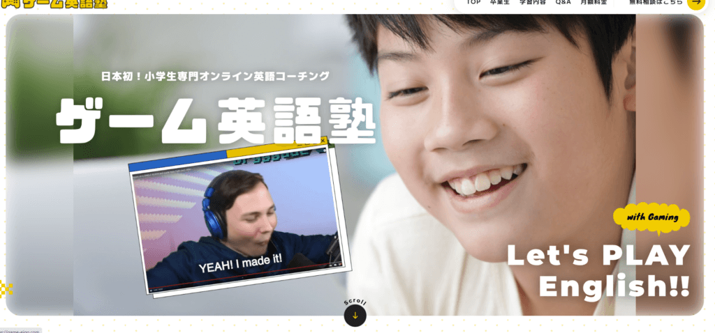| 特徴 | ゲーム英語塾は、「ゲームで学ぶから、続けられる」をコンセプトにしたオンライン英語教室です。市販ゲームやオリジナル教材を使い、実際にキャラクターを動かしながら英語に触れることで、単語や文法だけでなく「使える英語力」を身につけていきます。 授業はすべて日本語サポート付きですので、英語が苦手な方や、オンラインに不慣れな方でも安心してご参加いただけます。また、レベル別クラスやマンツーマンレッスンもご用意しており、お子さまから大人の方まで、それぞれのペースで学習を進めることができます。 ただ問題を解くだけでなく、ゲーム世界でのミッション達成や会話イベントを通して、「もっと話したい」「読み解きたい」という自然なモチベーションを引き出します。英語学習が初めての方も、挫折経験のある方も、ゲーム英語塾で楽しく英語を始めてみませんか。 |