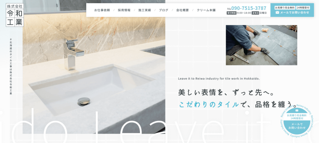 | 特徴 | 株式会社令和工業は、札幌市を拠点にタイル工事を手掛けています。 |