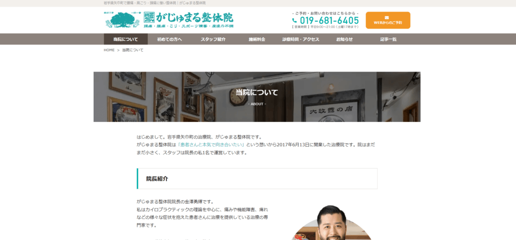 | 特徴 | がじゅまる整体院は、岩手県矢巾町にある、腰痛・肩こり・頭痛などの不調に強い整体院です。JR東北本線「矢巾駅」東口より徒歩5分、イオンスタイル矢巾店のすぐ近くにあり、無料駐車場も4台完備しておりますので、お車でも安心してお越しいただけます。 当院は「患者さんと本気で向き合いたい」という想いのもと、日本とアメリカそれぞれの技術を取り入れた施術を行っております。神経系と骨格の両面からアプローチすることで、痛みやしびれ、スポーツ障害など、さまざまな症状の根本原因を見極め、改善へと導きます。 完全予約制のためお待たせする時間も少なく、初めての方にもわかりやすい説明と丁寧なカウンセリングを心がけております。「ホームページを見た」で初診料が無料になる特典もご用意しておりますので、つらい症状でお悩みの方は、ぜひ一度ご相談ください。 |