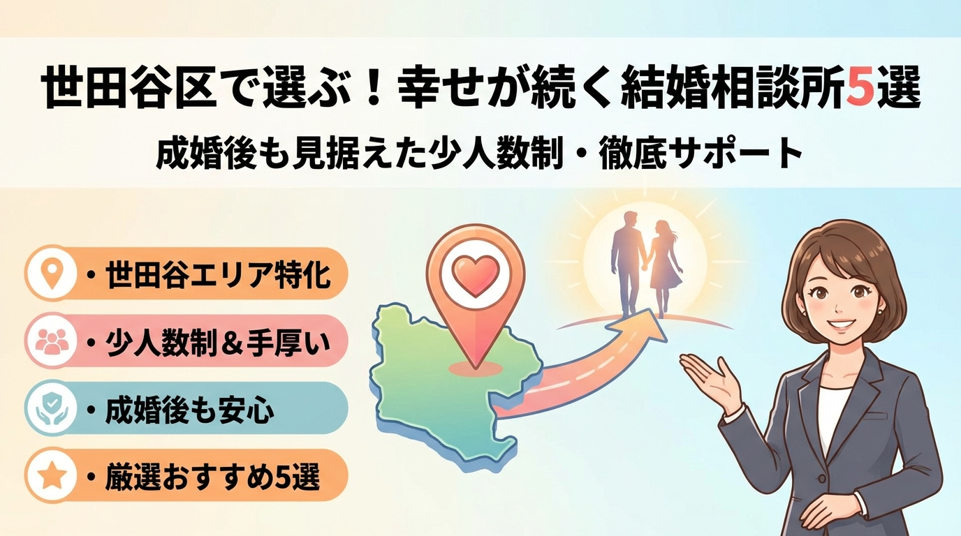 本記事では、世田谷や二子玉川・三軒茶屋・用賀・自由が丘周辺の大手エージェントから個人サロン、オンライン型までを網羅しつつ、成婚料とキャンペーン設計が生む「成婚至上主義」の構造を明らかにします。そのうえで、成婚後3〜12か月のフォロー体制、夫婦カウンセリングや家計相談、価値観の棚卸しをどこまで実務として行っているかという視点で再ランキングし、「ご成婚をゴールとしない結婚相談所」を見抜く具体的な選び方を提示します。さらに、結婚をやめた方がいいサイン、無料カウンセリングで必ず聞くべき質問集、30代後半女性や40代男性の実例まで一気に整理しました。この数十分をかけずに入会を決めること自体が、離婚リスクという形で最も高くつく費用になりかねません。