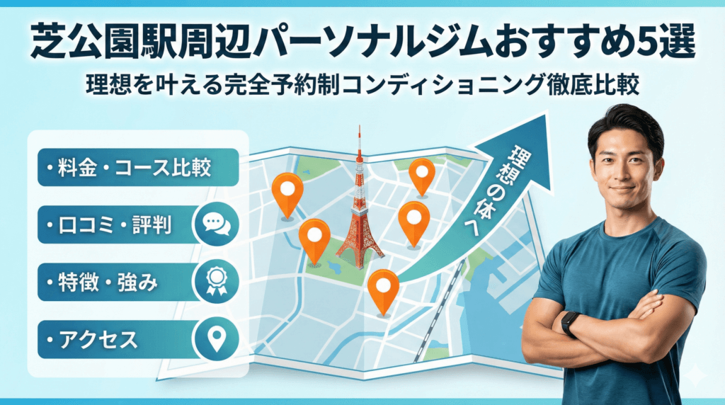 本記事では、芝公園駅近くのパーソナルジムを料金・距離・個室・女性向け・食事サポートで横断比較。週1・週2の費用感や、都度払い・回数券・月額制の向き不向きも整理しました。無料体験の流れや準備しておくべき情報も解説し、初めてでも迷わず一歩を踏み出せます。
