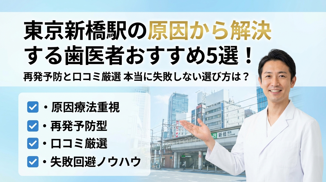 この記事は、「東京新橋駅 原因から解決する歯医者」で検索した新橋勤務のビジネスパーソン向けに、どの医院なら本当に再発予防まで含めて任せてよいかを、実務目線で絞り込むためのガイドです。早く終わる診療ばかり選ぶと再治療が増える理由、口コミや評判のどこを見れば「やばい」歯科を事前に除外できるか、削らない虫歯治療やレーザー治療、親知らずゴッドハンドの宣伝に潜むリスクを具体的に解き明かします。