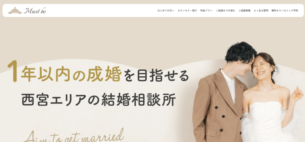 | 特徴 | 縁結びサロン Must be は、兵庫県西宮市にある結婚相談所です。東証プライム上場IBJの正規加盟店として、業界最大級の会員ネットワークから理想のお相手探しをサポートいたします。外見・内面の両面から魅力を高めるオーダーメイド型の婚活と、上級心理士の資格を持つカウンセラーによるメンタルケアで、初めての方でも安心して活動を続けていただけます。お見合い練習やファッション提案、デートの振り返りまできめ細やかに伴走し、西宮エリア屈指の成婚実績にもとづく独自の戦略で、1年以内のご成婚を力強く後押しいたします。「あの時、勇気を出してよかった」と心から思えるご縁を、ぜひ一緒に叶えましょう。まずは無料カウンセリングで、あなたの想いや不安をゆっくりお聞かせください。 |