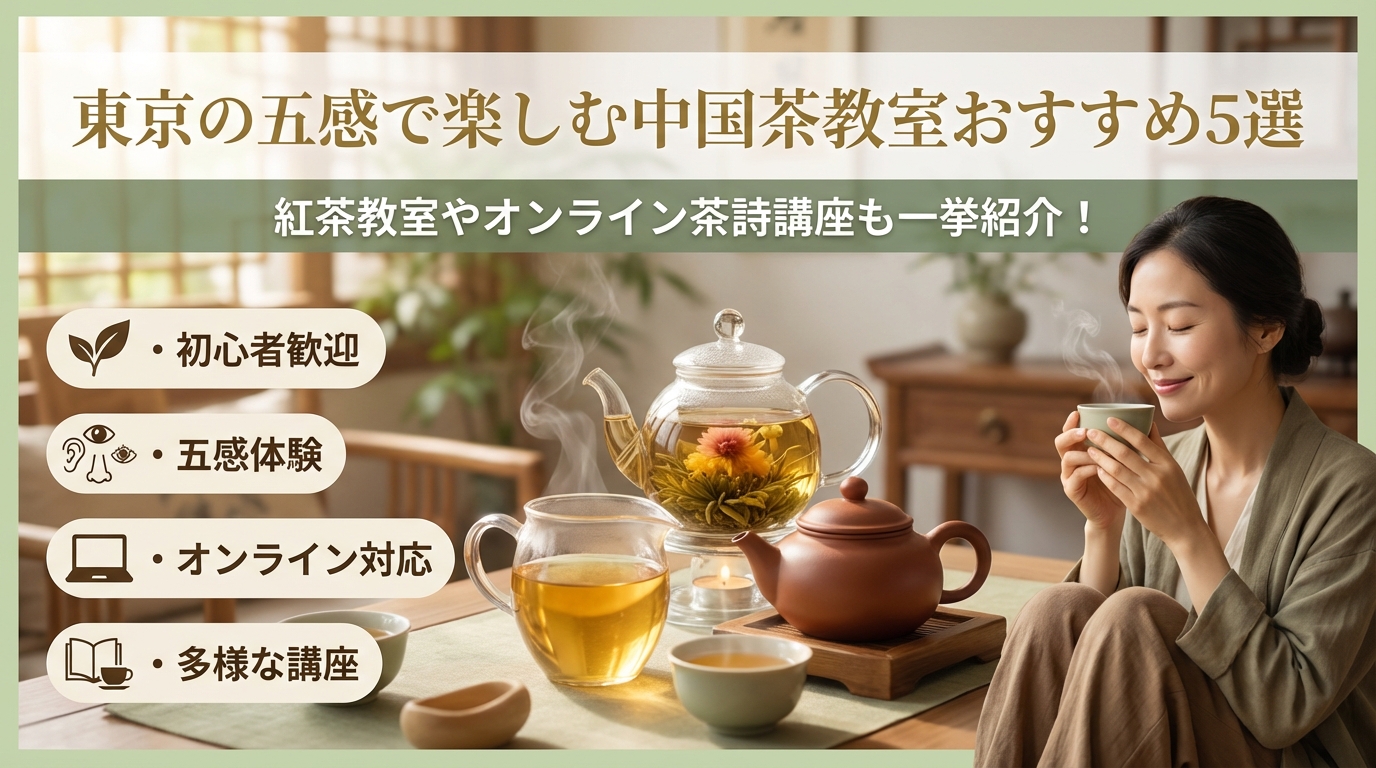 本記事では、香りを聞き、湯の音を楽しみ、茶器の質感と夜景・空間まで含めて味わう「東京で五感を楽しむ中国茶教室」を、教室型・サロン型・夜景茶会・体験イベントという4タイプに整理し、料金やエリアだけでなく、五感のどこが強いかという軸で徹底比較します。初心者の女性会社員、文化系男子、資格志向の方それぞれに向いた選び方、挫折が起きやすいパターンとその回避術、自宅や関西エリアでの継続方法まで一気通貫で押さえます。この数十分を投資すれば、「なんとなく良さそう」で選んで失敗するリスクを削り、本当に一生ものになる中国茶との付き合い方だけを残せます。