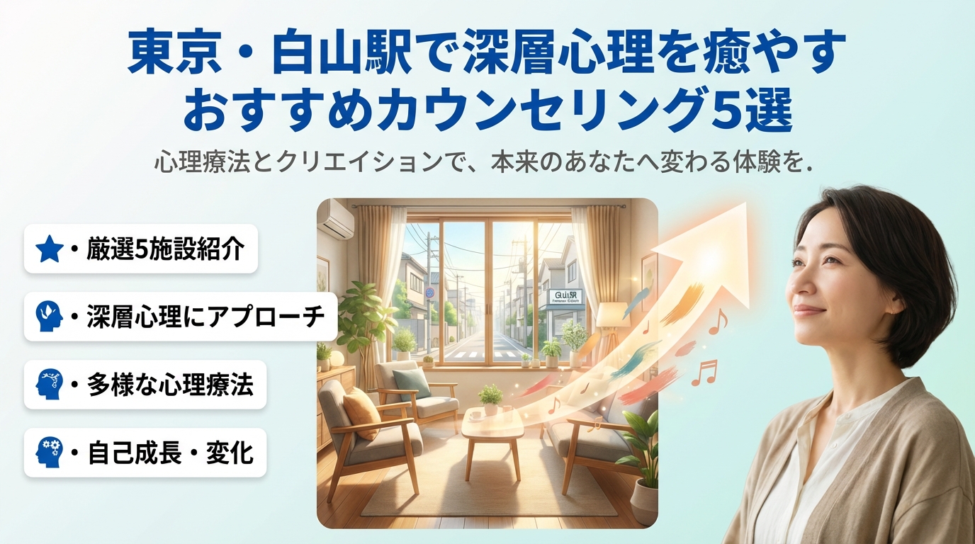 - 東京の白山駅から通いやすい4つの選択肢を徹底比較!深層心理を癒やす心理カウンセリングの「病院」「自費ルーム」「講座」「オンライン」リアル体験解説