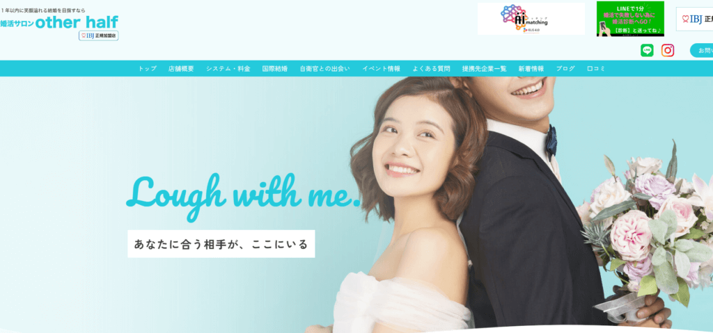 | 特徴 | 婚活サロンother halfは、北海道で本気で結婚を目指す方のためのオンライン型結婚相談所です。業界最大級の会員数を誇るIBJ正規加盟店として、豊富なお見合い機会と高い成婚実績をもとに、一人ひとりに合ったお相手探しをサポートいたします。メイク・ファッション・コミュニケーションなど各分野の専門家と提携し、自分磨きからお見合い、交際、成婚まで伴走するハイブリッド型サポートが特徴です。お見合い料は無料で、出会いのチャンスを逃さず活動していただけます。さらに、少人数制のマンツーマンサポートにこだわり、担当カウンセラーがきめ細やかにフォローいたします。オンライン相談にも対応しておりますので、道内どこからでもご利用いただけます。まずは無理な勧誘なしの無料個別相談から、お気軽にご相談くださいませ。 |