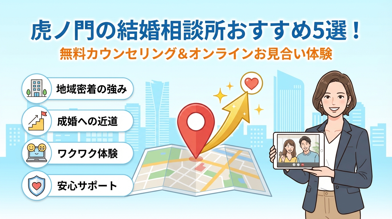 この「小さな改善1つ」に集中できるかどうかで、半年〜1年の総費用の回収率が大きく変わります。虎ノ門周辺はアクセスも良く、仕事帰りの面談が組みやすいエリアです。その利点を生かして、数字やランキングに振り回されるより、「今日の自分の会話をどうアップデートするか」に情報を集約していくことが、最終的に一番コスパの良い婚活になります。