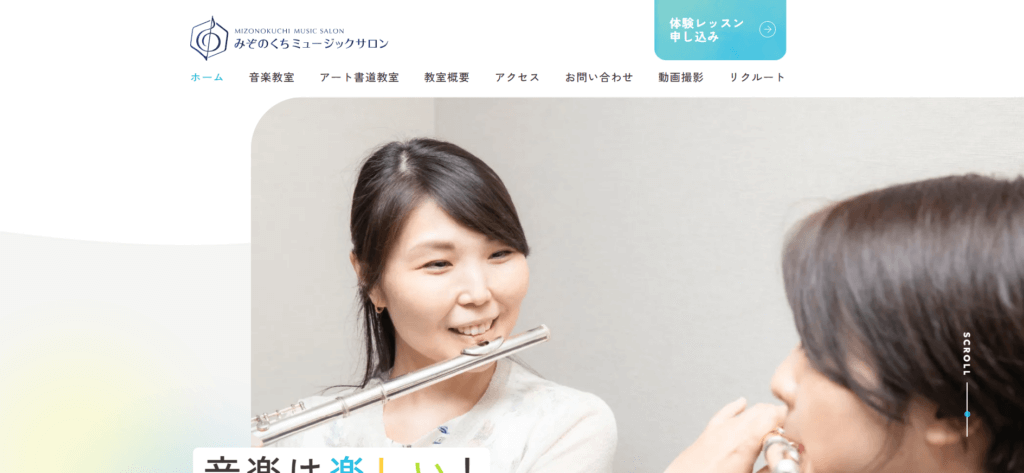 | 特徴 | みぞのくちミュージックサロンは、溝ノ口劇場と同じ建物の4階にある、小さなアットホームな音楽教室です。サックス・フルート・クラリネット・トロンボーン・オカリナ・ピアノ・声楽・ヴァイオリン・チェロに加え、アート書道も開講し、初心者の方から経験者まで幅広く歓迎いたします。マンツーマン指導で、一人ひとりに合わせたカリキュラムをご提案しますので、楽譜が読めない方も安心してお通いいただけます。レッスンは月1回から選べ、年会費・管理費・設備費は不要、シンプルで分かりやすい料金体系です(入会金10,000円)。JR武蔵溝ノ口駅徒歩3分、東急溝の口駅徒歩4分の通いやすい立地で、グランドピアノなど充実の設備をご用意しています。体験レッスン(30分・税込1,000円)を随時受付中です。まずはお気軽にお問い合わせください。 |